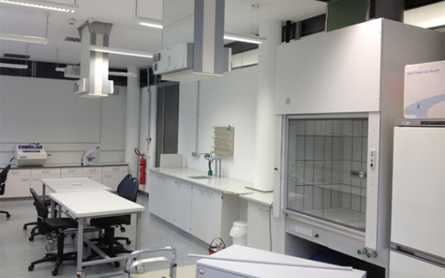 E-INSTALLATIONEN ALLGEMEIN: Verrohrung und Verkabelung von Arbeitsplätzen, Steckdosen, Klima – und Lüftungsgeräten. Beleuchtung, Beschattung und Lüftung über EIB gesteuert. Not-Aus- Schalter für die einzelnen Laborräume².